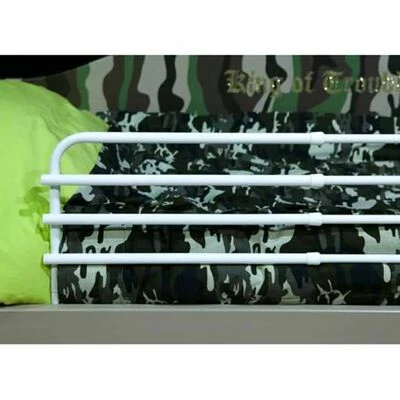 Cette barre de lit est réglable en largeur de 77 à 125 cm et a une hauteur de 35 cm (mesurée à partir du bas du matelas), de sorte qu’elle s’adapte à n’importe quel lit. Afin de renforcer l’ensemble du cadre, le portail en métal blanc a 3 barres parallèles supplémentaires et il est toujours en position verticale afin d’éviter que votre enfant ne tombe du lit.
