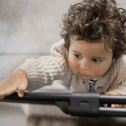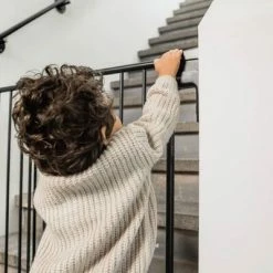Vous pouvez faire passer votre enfant sans avoir à le poser d’une seule main. Cette porte de sécurité est fixée au mur.