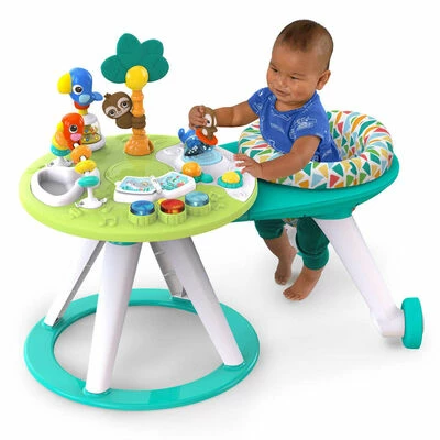 Le centre d’activités et la table 2-en-1 Around We Go Tropic Cool de la marque Bright Starts sont conçus pour plusieurs modes, plusieurs étapes importantes et plusieurs enfants pour en profiter en même temps !