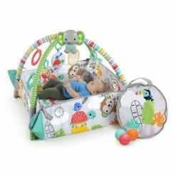Avec 5 façons de jouer, ce tapis d’activité est super flexible pour tous les besoins de votre bébé en matière d’âge. Vous pouvez même ajuster les murs en peluche vers le bas ou vers le haut pour remplir la portique d’activités avec des balles colorées, faisant durer la joie pendant des années des tout-petits ! Maman et papa peuvent entrer dans l’action (et avoir beaucoup de temps de jeu avec leur enfant) en laissant tomber les balles à travers le trou de la canopée en maille. Au fur et à mesure que le bébé grandit, il peut pratiquer les compétences motrices en laissant tomber les balles par lui-même ! Pour les bébés plus jeunes, la portique d’activités jumbo repose à plat pour le temps passé sur le ventre (psst, nous avons même ajouté un oreiller d’accessoire pour le ventre). Le joyeux jouet éléphant joue de la musique et s’allume pour attirer et garder l’attention du bébé. Vous allez adorer la portique d’activités Totally Tropical avec des toucans, des palmiers et plus encore.