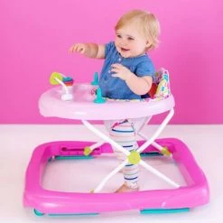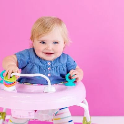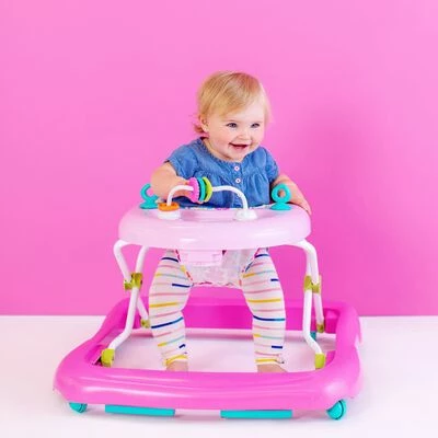 Avec des blocs aux couleurs vives et un chasseur à billes géométrique ludique, votre bébé aura l’impression de marcher au soleil. Toutes les aventures tirées de ce trotteur d’activités pour bébés laisseront une trace de sourires et de rires. Le siège à haut dossier et les trois positions réglables en hauteur gardent le bébé sur ses orteils. Ce trotteur pour bébé est amélioré en toute sécurité avec les pieds en caoutchouc qui «freinent» et il donne à votre bébé un cadre robuste pour marcher.