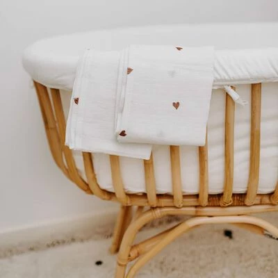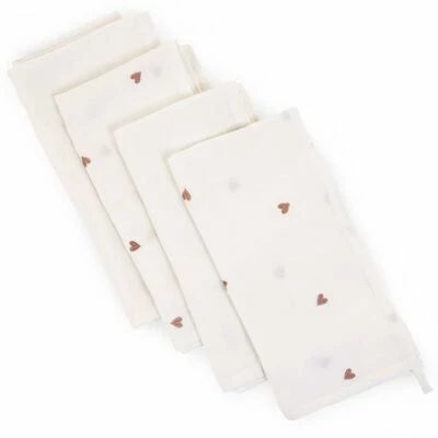 Cet ensemble de tissu tétra de la marque CHILDHOME est un ensemble agréable et surtout pratique de 4 tissus tétra (dont 2 avec un joli motif de cœur et 2 en blanc cassé).