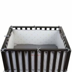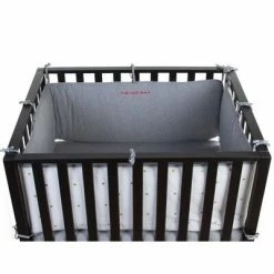 Le coussin de sécurité de côté de ce parc pour enfants peut être utilisé sur 2 côtés et peut être facilement attaché aux lattes avec les sangles au côté.