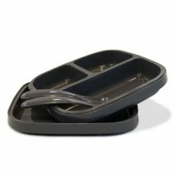 La livraison comprend une assiette standard, une assiette à 3 compartiments différents, une fourchette et une cuillère.