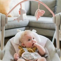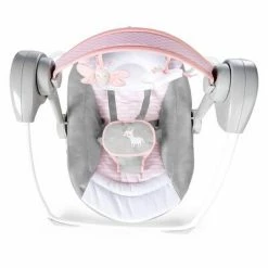 Apportez du confort lorsque vous voyagez avec votre bébé avec la balançoire portable Comfort 2 Go Flora the Unicorn de la marque Ingenuity.