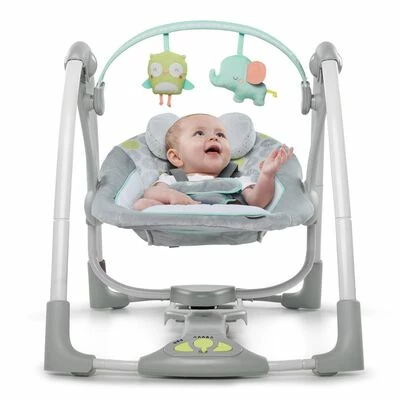 Cette jolie balançoire portable Swing ‘n’ Go Hugs & Hoots de la marque Ingenuity offre un luxe luxueux avec une commodité portable !