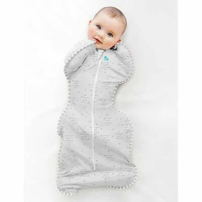 Cette couverture grise pour bébés M Swaddle UP Lite Text de la marque Love to Dream garde votre bébé confortablement au chaud, sans avoir à vous soucier des couvertures à retirer pendant le sommeil. Le Swaddle UP Lite Text est un sac de couchage pratique pour bébés de 3 à 6 mois.