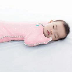 Cette couverture rose pour bébés M Swaddle UP Lite de la marque Love to Dream garde votre bébé confortablement au chaud, sans avoir à vous soucier des couvertures à retirer pendant le sommeil. Le Swaddle UP Lite est un sac de couchage pratique pour bébés de 3 à 6 mois.
