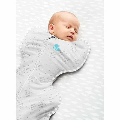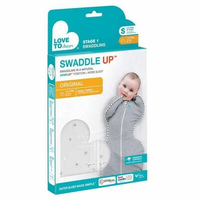 Cette couverture grise pour bébés S Swaddle UP Lite Text de la marque Love to Dream garde votre bébé confortablement au chaud, sans avoir à vous soucier des couvertures à retirer pendant le sommeil. Le Swaddle UP Lite Text est un sac de couchage pratique pour bébés de 1 à 3 mois.