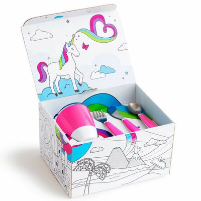 Cet ensemble est également parfait comme cadeau avec un boîte-cadeau présentant une activité de coloriage sur le thème de la licorne.