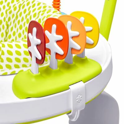 Avec un compteur de rebond nuage lumineux pour suivre les sauts du bébé, la balancelle pliable Explore & More de la marque Skip Hop récompense le bébé avec des lumières et de la musique et éclate en applaudissements au jalon des 100 sauts !