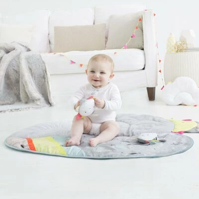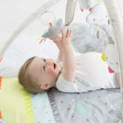 Offrant des heures de jeu de peluche, elle présente une palette de couleurs douces pour stimuler la vue du bébé. Cinq jouets suspendus à thème céleste engageront le bébé avec des lumières, de la musique et d’autres stimulations, tandis que le tapis moelleux offre un confort ultime, semblable à un nuage.