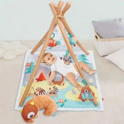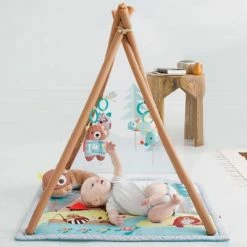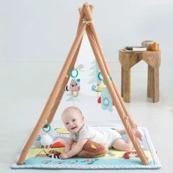 Avec une structure à motifs de grains de bois, cette portique d’activités de camping pour les bébés de la marque Skip Hop a une sensation d’extérieur !