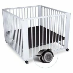 Le parc pliable blanc pour enfants Moritz de la marque tiSsi est parfait pour les petits appartements, les garderies et les hôtels, et fournit également l’aire de jeu sûre nécessaire pour une visite chez les grands-parents.