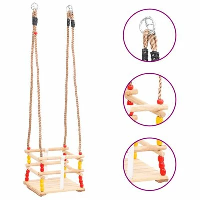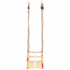 Cette balançoire pour tout-petits est fabriquée en pin massif avec des supports à l’avant, sur les côtés et à l’arrière pour que votre enfant puisse se balancer en toute sécurité. La balançoire pour bébé est dotée de cordes en PE et de jolies perles rouges et jaunes sur les poignées latérales. Équipée de ceinture de sécurité, la balançoire pour bébé assurera confort et sécurité à vos petits. Votre enfant s’assoit confortablement et est assuré de s’amuser pendant des heures !