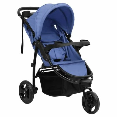 VidaXL Poussette bébé à 3 roues Bleu marine et noir Acier