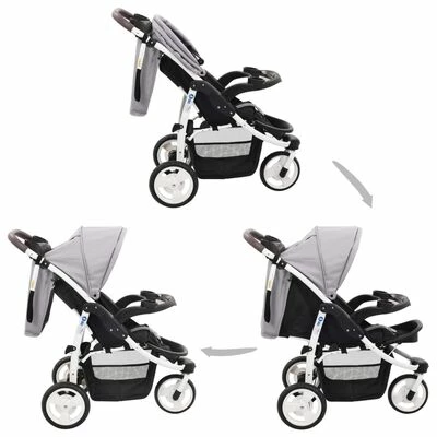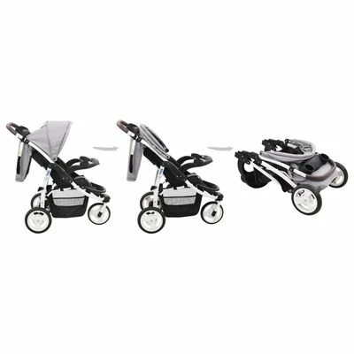 VidaXL Poussette bébé à 3 roues Gris et noir