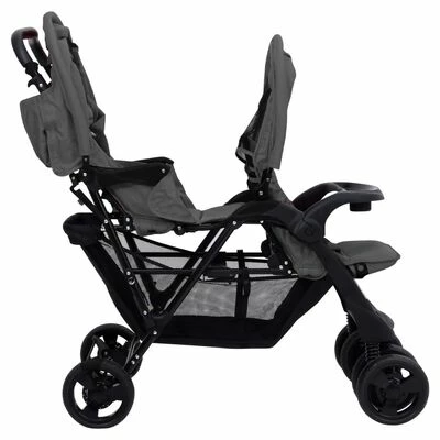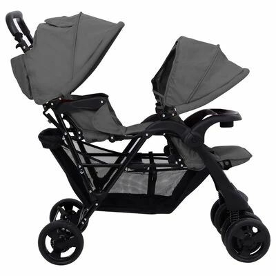 VidaXL Poussette à deux places Gris foncé Acier