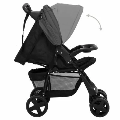 VidaXL Poussette pour bébé 3-en-1 Gris foncé et noir Acier