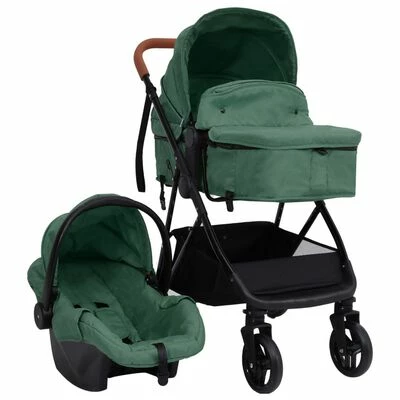 VidaXL Poussette pour bébé 3-en-1 Vert et noir Acier